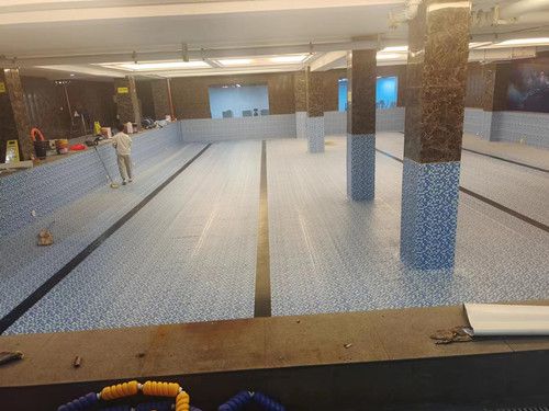 浙江室內(nèi)游泳池防水膠膜施工完畢,本項目為新建鋼結構拼裝泳池,采用1.5mm顆粒防滑游泳池防水膠膜,安裝鋪設使用干鋪工藝,四周采用卡槽固定,整體形成密封結構,達到防水不漏水,效果如下: